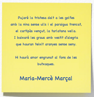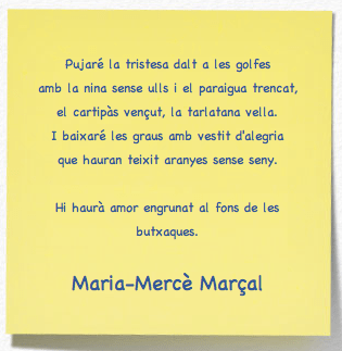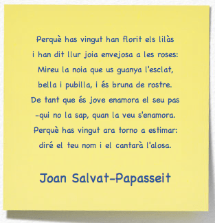 Ep! No ens pot passar per alt! Avui la xarxa va plena de versos en català per celebrar el dia de la Poesia Catalana a Internet! A llegir no podia faltar-hi! Aquí teniu alguns versos d’aquells que no pots evitar subratllar quan de sobte te’ls trobes (o et troben!):