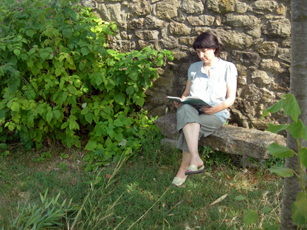 La Roser ens envia aquesta foto d’ella llegint “La llibreria de les noves oportunitats” d’Anjali Banerjee al jardí de casa seva a Puig-oriol.
