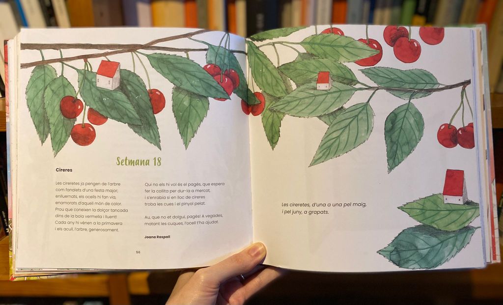 Si bé és cert que potser hi he trobat a faltar autors actuals que escriuen poesia per als més petits com la Núria Albertí, el que per a mi fa d’aquesta una antologia poètica un recull especial és la delicadesa de les magnífiques il·lustracions de l’Albert Arrayás. Mireu un dels meus preferits, la setmana 18: