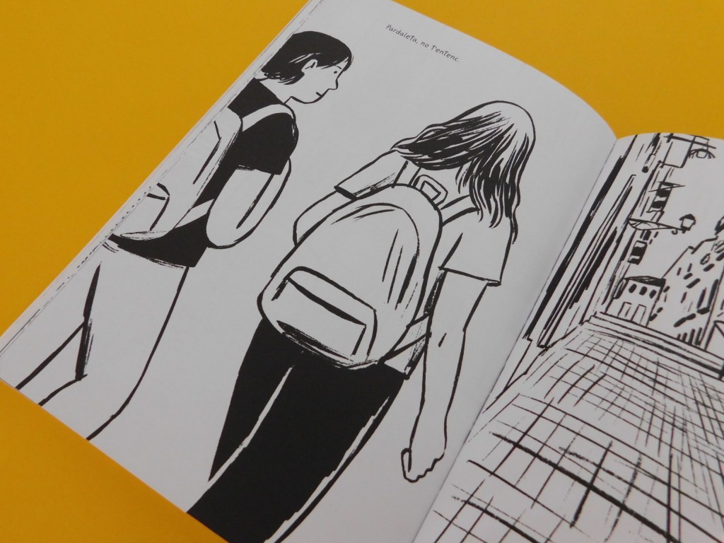 Mentre la llegia, m’ha recordat molt en alguns aspectes a Mary John, potser perquè sé que les dues són de Planeta Tangerina (una editorial portuguesa que fa màgia amb tot el que edita), potser per les cobertes (en blanc i un color), potser per la temàtica adolescent… A Mary John hi trobem algun fragment amb vinyetes i aquí hi ha força pàgines amb text que s’escapen de la novel·la gràfica tradicional; potser és per aquesta combinació… I potser és per tot plegat, però tot i no saber dir-vos ben bé el què, Pardaleta té un nosequè que respira de la mateixa manera que Mary John i m’ha agradat aquesta reminiscència.