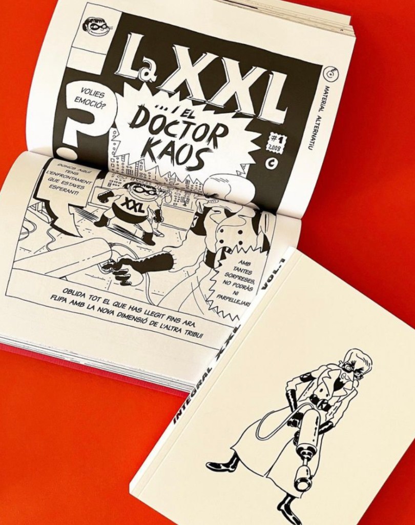 Però què és i sobretot, qui és l’XXL? XXL és el nom de superheroïna de la Dijous, la protagonista d’aquestes històries (en aquest 1r volum hi tenim dues aventures de l’XXL), i és un còmic escrit per l’Eduard Màrquez i dibuixat per l’Artur Laperla. No és pas un còmic nou perquè el 2012 ja va ser publicat sense massa èxit per Cruïlla, però ara ens arriba en una edició cuidadíssima que ens recorda el format del manga, amb una coberta moderna i una manejabilitat (no sé com dir-ho, però m’enteneu, oi?) que convida a obrir-lo, fullejar-lo i llegir-lo i rellegir-lo perquè el llibre com a objecte és d’allò més agradable.