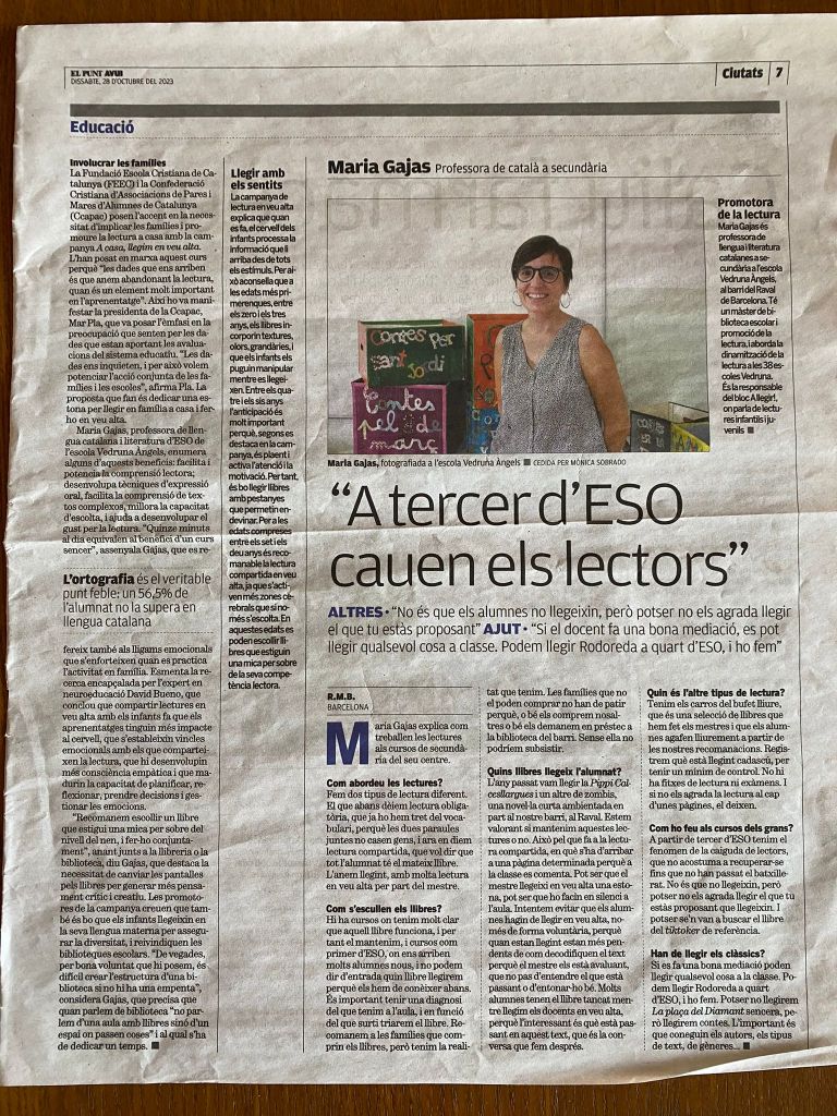 Quan vam presentar la campanya #acasallegimenveualta el diari El Punt Avui va aprofitar per fer-me una entrevista sobre la meva tasca de mediació literària a l’escola. Aquí la teniu.
